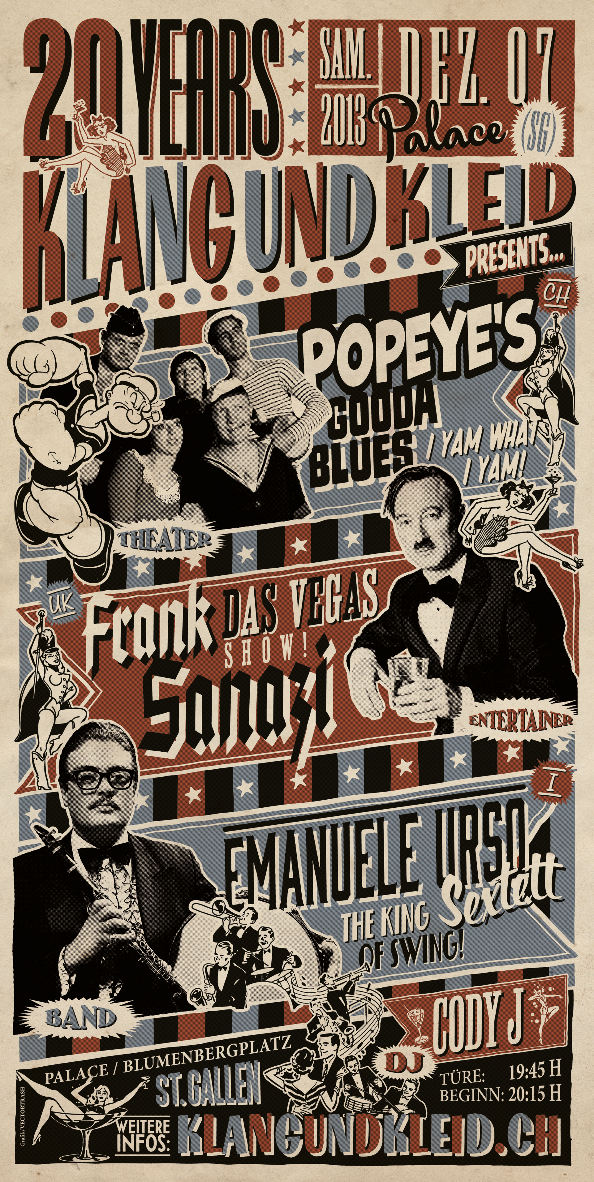 Eine Club 111 Produktion: Mit dabei der legendäre Beat-Man (The Monsters, Voodoo Rhythm), Jackie Brutsche (The Jackets), Grazia Pergoletti und S.K.E.L.T., Ausstattung: Andi Becker & Renate Wünsch, Musik: Simon Hari, Regie: Meret Matter. Palace, St. Gallen
