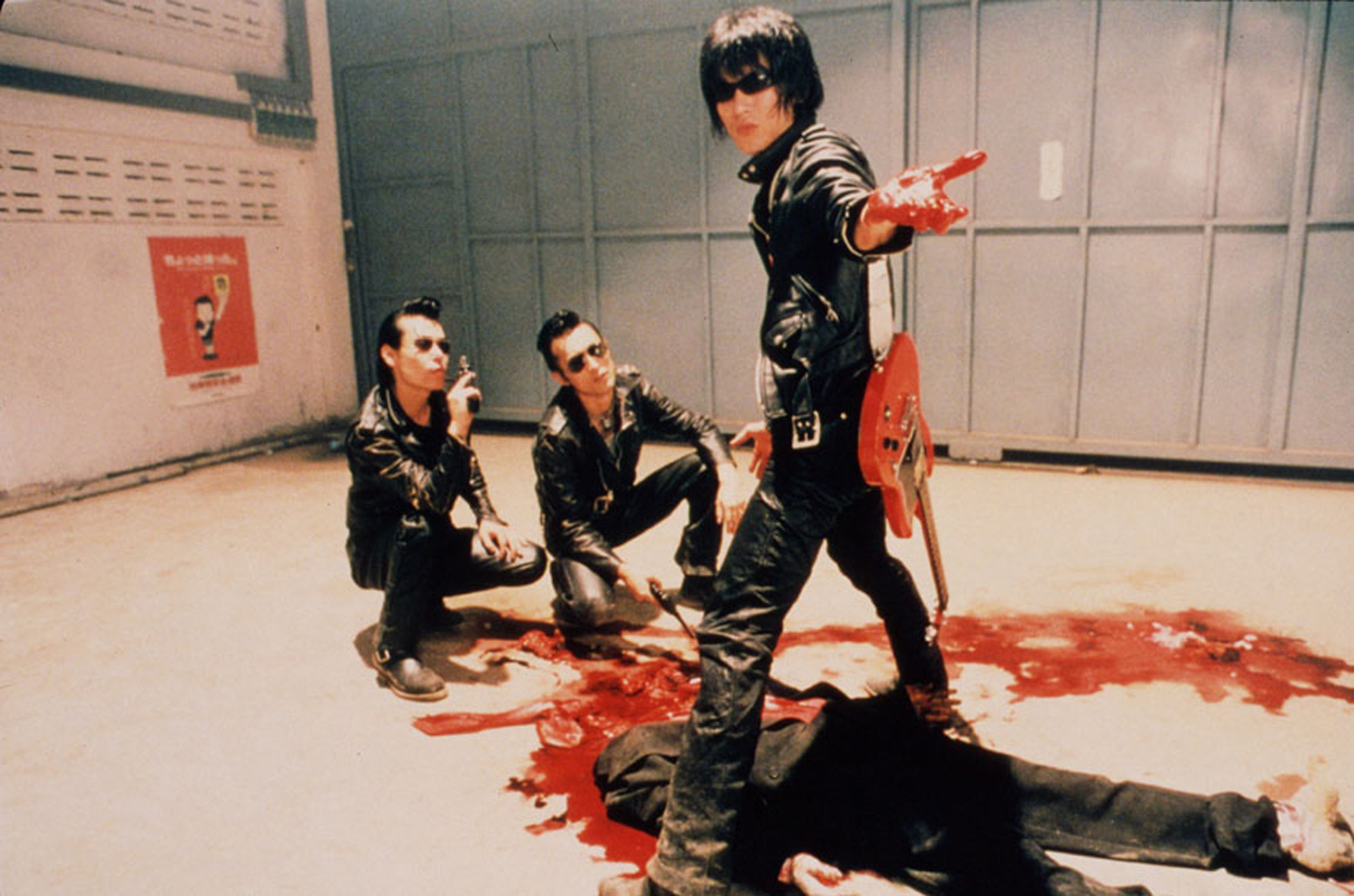 Wild Zero - The Movie (Japan 1999): Die Geschichte von WILD ZERO dreht sich um den "die-hard"-Fan Ace (Masashi Endo), der seiner Lieblingsband Guitar Wolf von Auftritt zu Auftritt folgt, sei der Auftrittsort auch noch so entlegen. In einem solchen abgelegenen Kaff soll der nächste Auftritt von "Guitar Wolf" stattfinden. Natürlich macht sich Ace auf den Weg und lernt auf seiner Fahrt die hübsche Tobio kennen und lieben. Das Kaff entpuppt sich jedoch als unheimliche Geisterstadt, in der es von gierigen Zombies nur so wimmelt. Doch die Untoten haben die Rechnung ohne Guitar Wolf gemacht...